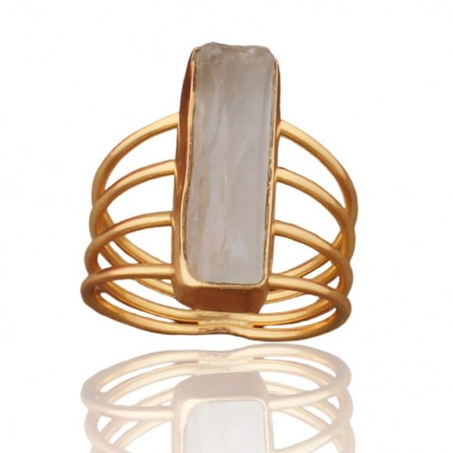 Raw Aquamrine 14kt Gold Plated Brass Ring Gift For Her, Handmade Natural Rough Gemstone Ring For Women Wedding Anniversary Jewelry