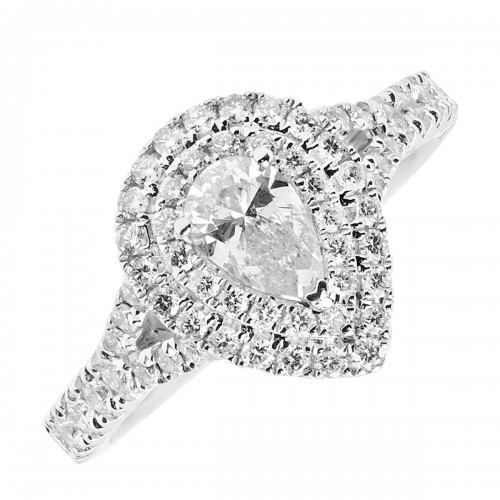 Pear Diamond Halo Ring in 14kt White Gold (1ct tw) DENG00313