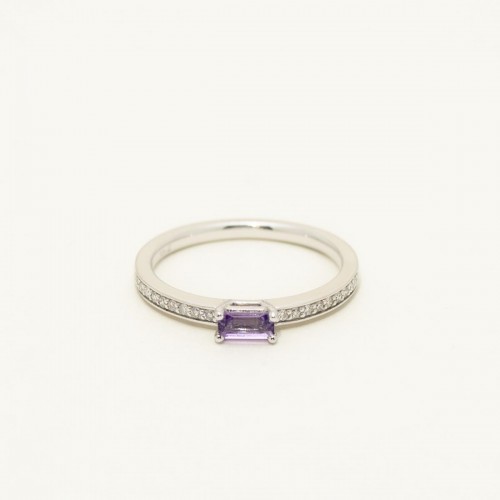 Baguette Amethyst Ring in 14kt White Gold with Diamonds (1/10ct tw) CSRNG1286