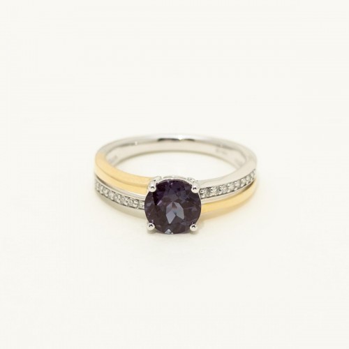 Created Alexandrite Ring in 14kt Yellow and White Gold with Diamonds (1/10ct tw) CSRNG1266