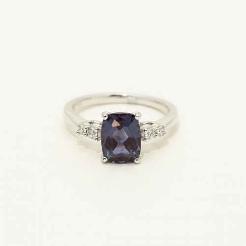 Cushion Cut Created Alexandrite Ring in 14kt White Gold with Diamonds (1/7ct tw) CSRNG1268