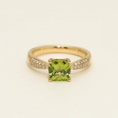 Cushion Cut Peridot Ring in 14kt Yellow Gold with Diamonds (1/7ct tw) CSRNG1896