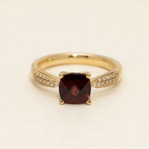 Cushion Cut Garnet Ring in 14kt Yellow Gold with Diamonds (1/7ct tw) CSRNG1903