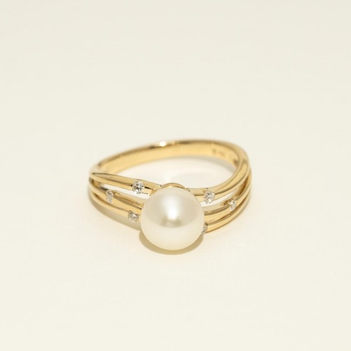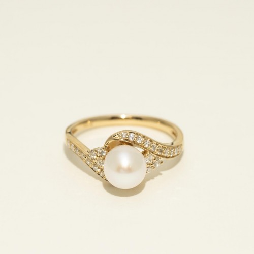 Cultured Freshwater Pearl Ring in 14kt Yellow Gold with Diamonds (1/10ct tw) CSRNG1626