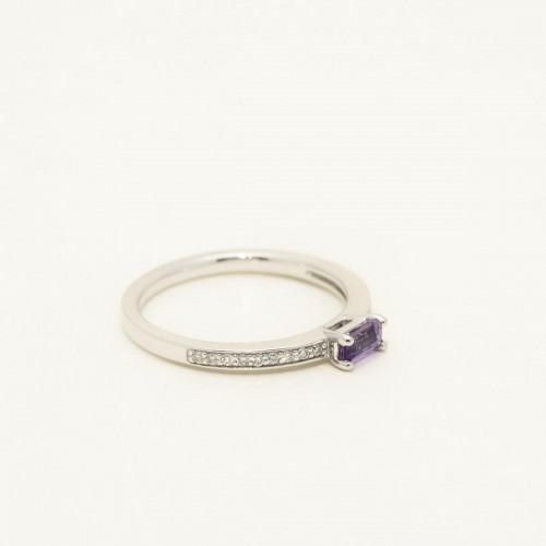 Baguette Amethyst Ring in 14kt White Gold with Diamonds (1/10ct tw) CSRNG1286