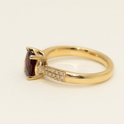 Cushion Cut Garnet Ring in 14kt Yellow Gold with Diamonds (1/7ct tw) CSRNG1903