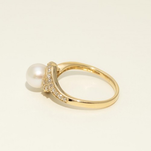 Cultured Freshwater Pearl Ring in 14kt Yellow Gold with Diamonds (1/10ct tw) CSRNG1626