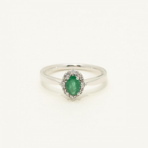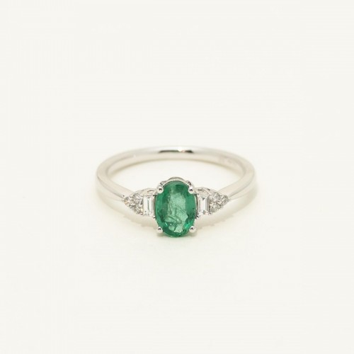 Oval Emerald Ring in 14kt White Gold with Diamonds (1/10ct tw) CSRNG1285