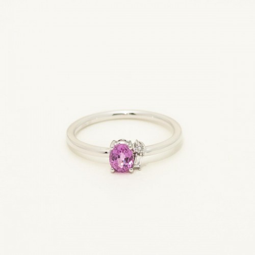 Oval Pink Sapphire Ring in 14kt White Gold with Diamonds (.04ct tw) CSRNG1275