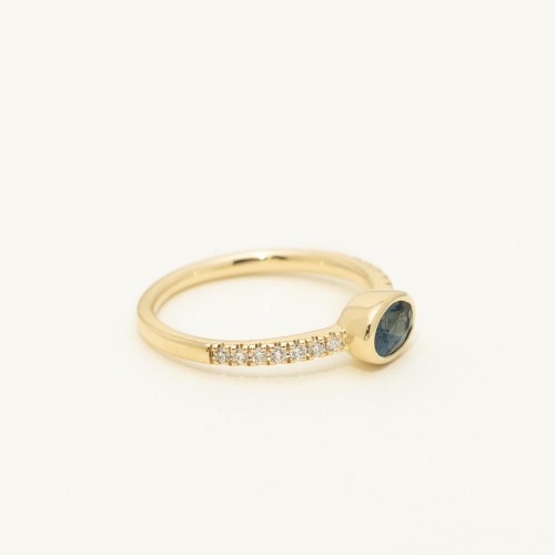 Oval London Blue Topaz Bezel Ring in 14kt Yellow Gold with Diamonds (1/7 ct tw) CSRNG1265