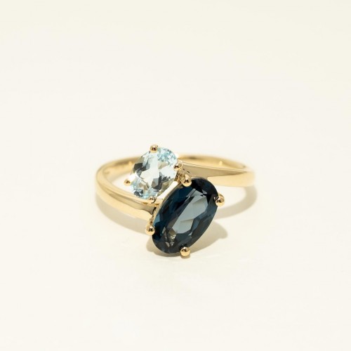 Oval London Blue and Sky Blue Topaz Ring in 14kt Yellow Gold CSRNG1630