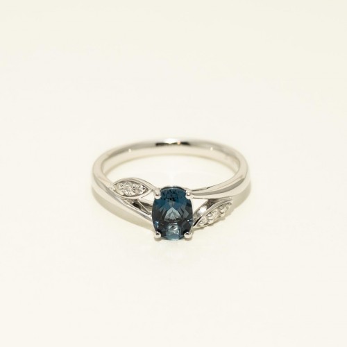 Oval London Blue Topaz Ring in 14kt White Gold with Diamonds (1/10ct tw) CSRNG1631