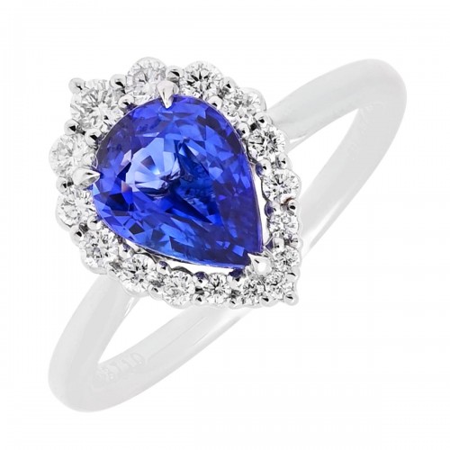 Martin Flyer Pear Shape Sapphire Ring in Platinum with Diamonds (1/4ct tw) CSRNG0613