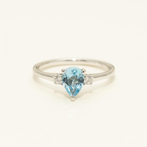 Pear Shaped Swiss Blue Topaz Ring in 14kt White Gold with Diamonds (1/20ct tw) CSRNG1862