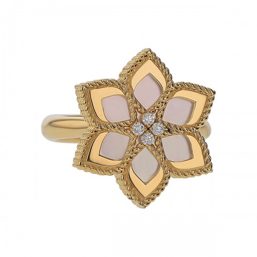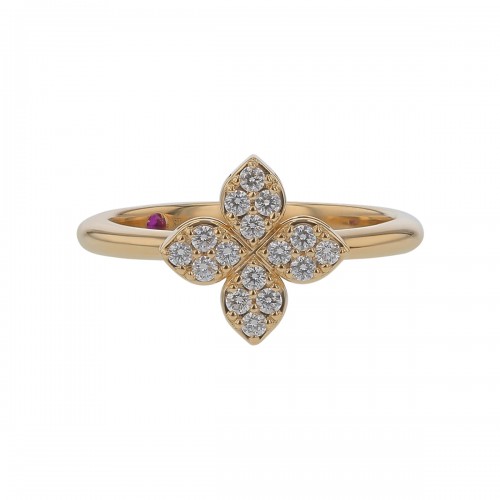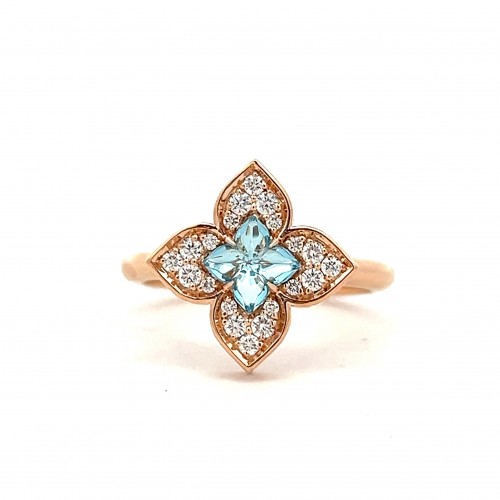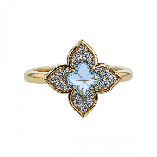 Venetian Princess 0.68ct Blue Topaz and 0.18ct Diamond Flower Ring in 18K Yellow Gold, size 6.5