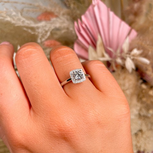 Maria – 18ct Yellow Gold .82ct Pavé Set Cushion Halo Earth Grown Diamond Engagement Ring K 1/2