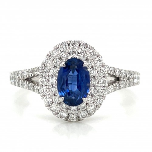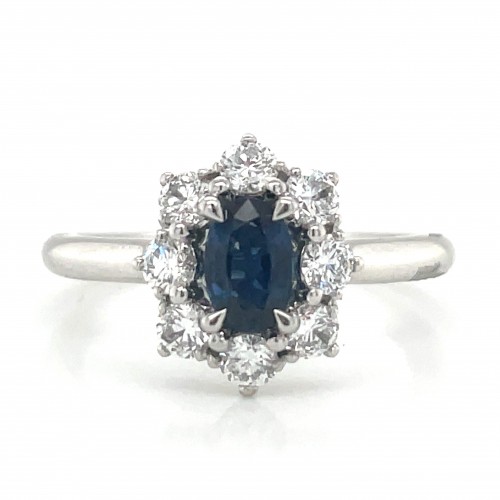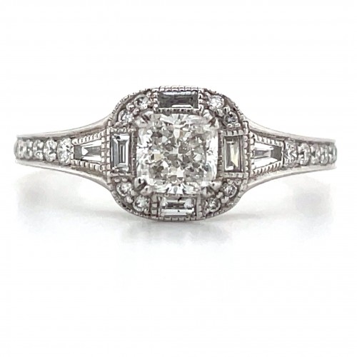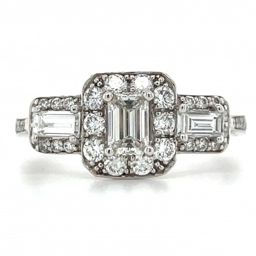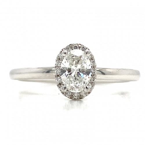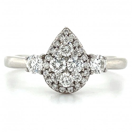 Mina – 9ct White Gold 0.50ct Pear Halo Earth Grown Diamond Engagement Ring With Two Side Stones M