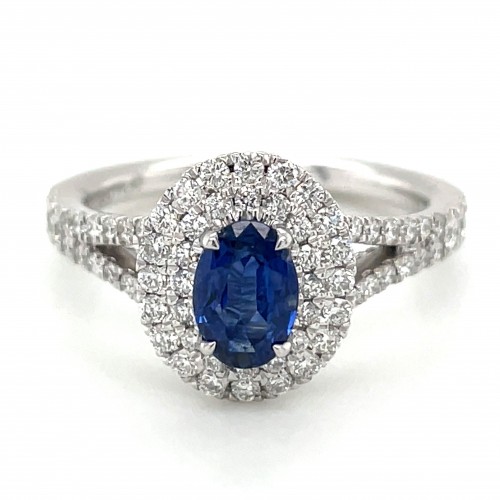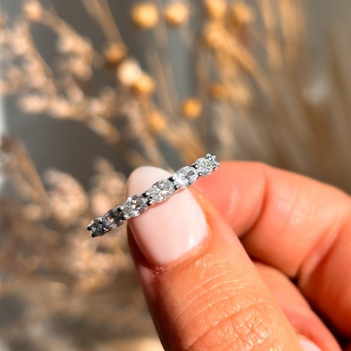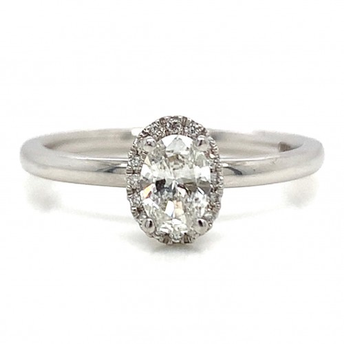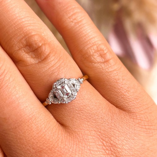 Mina – 9ct White Gold 0.50ct Pear Halo Earth Grown Diamond Engagement Ring With Two Side Stones M