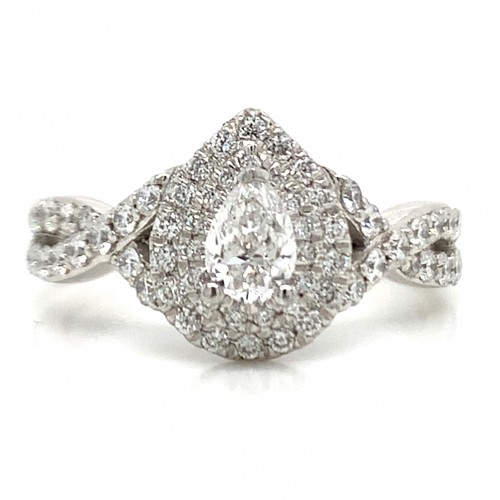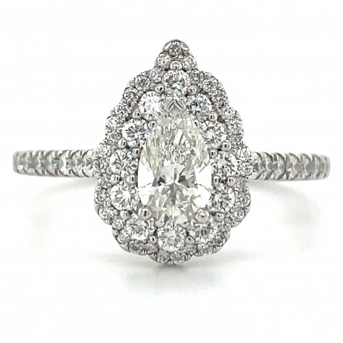 Soleste – Platinum Pear Double Halo Vintage Style 1.00ct Earth Grown Diamond Engagement Ring UK N