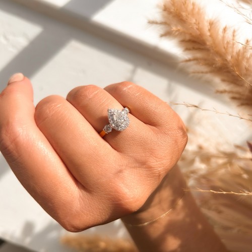 Soleste – Platinum Pear Double Halo Vintage Style 1.00ct Earth Grown Diamond Engagement Ring UK N