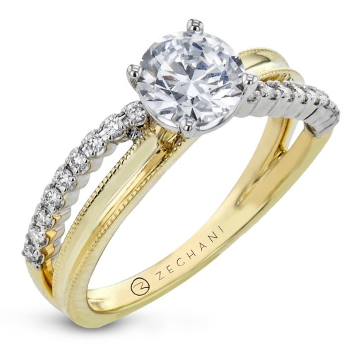 Engagement Ring in 14k Gold with Diamonds Yellow & White Gold Semi