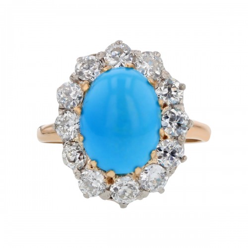 0.60ct Round Diamond and 0.47ct Diamond Halo Ring with Tapered Baguettes in 14K Yellow Gold, size 7