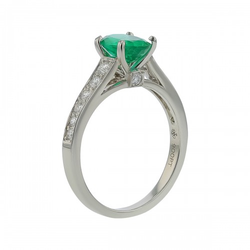 1.03ct oval Zambian emerald with 0.37ct of diamonds set in platinum. Size 6.5.