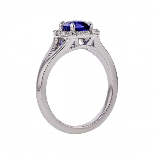 1.20ct Cushion Sri Lankan Sapphire and 0.20ct Diamond Halo Ring in Platinum, size 6