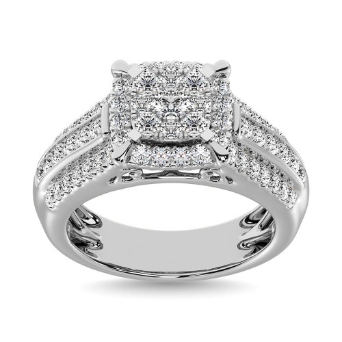 Ask Her To Be Yours With The Eye-Catching 10K White Gold Engagement Ring, Which Features A Diamond-Studded Shank And Frame Surrounding A 1 Ct.Tw.