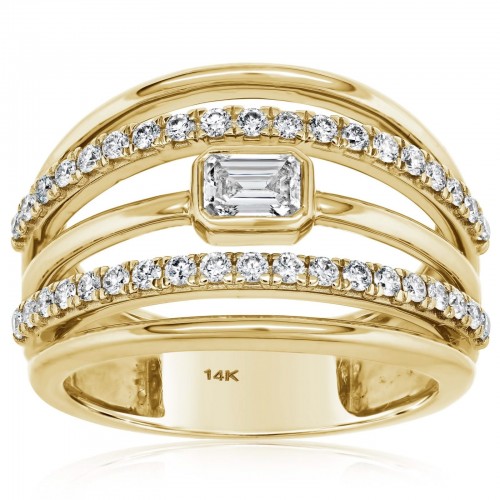 14K Gold .45 CTW Emerald Cut Diamond Fluted Ring