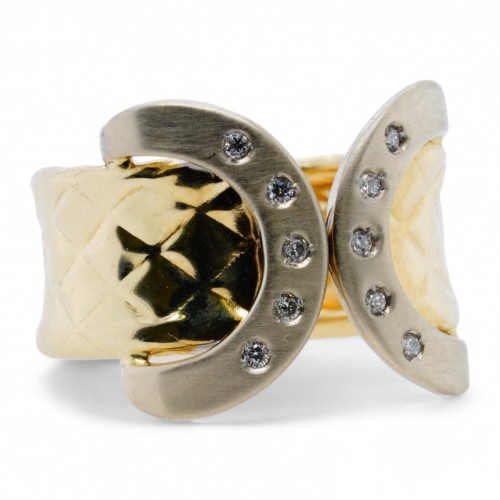 14K Matte Finished Gold Round Diamond Buckle Band