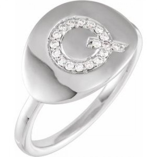 14K White 1/10 CTW Natural Diamond Initial O Ring First