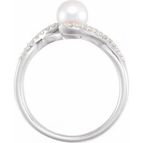 14K White Cultured White Freshwater Pearl & 1/10 CTW Natural Diamond Ring First