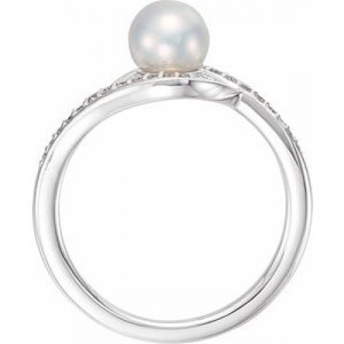 14K White Cultured White Freshwater Pearl & 1/8 CTW Natural Diamond Ring First