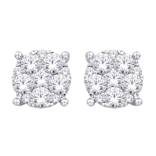 These Stud Earrings Fashioned In 14K White Gold, Each Earrings Features A Round Diamond Center Stone Surrounded By A Shimmering Frame Of Round Accent Diamonds Weighing Approximately 1 Ct. Tw. Surprise Her With A With A Floral Stud Earrings..