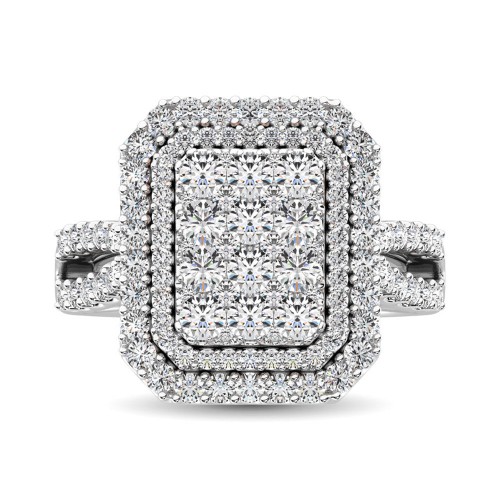 This glamorus Enagement ring is available in 14K White Gold. There are 116 round diamonds with a total carat weight of2 ct set in a Shared prong / Micro Prong setting.