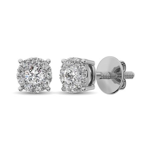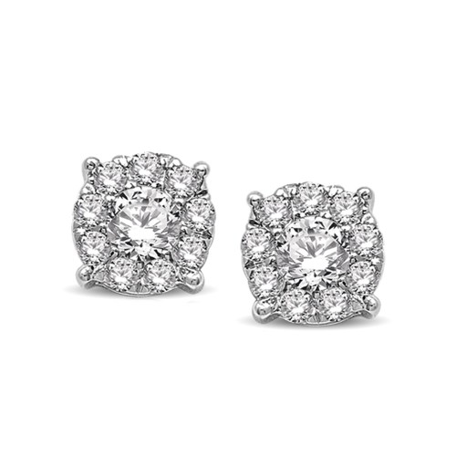 These stunning Earrings are available in 14K White Gold. There are 20 round diamonds with a total carat weight of 5/8 ctw set in a invisible setting / micro prong setting.