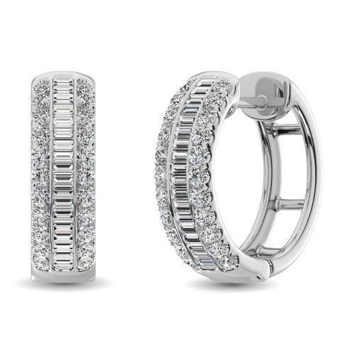 Dare to dazzle with this stunning women’s band. It showcases both round and baguette diamonds totaling in 2/5 CT along half of the band and set in 14KT solid white gold