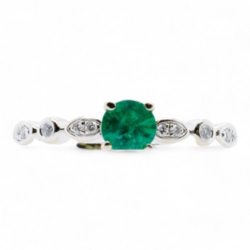 14K White Gold Round Diamond Center And Accents Engagement Ring