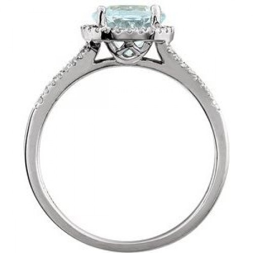 14K White Natural Aquamarine & 1/5 CTW Natural Diamond Ring First