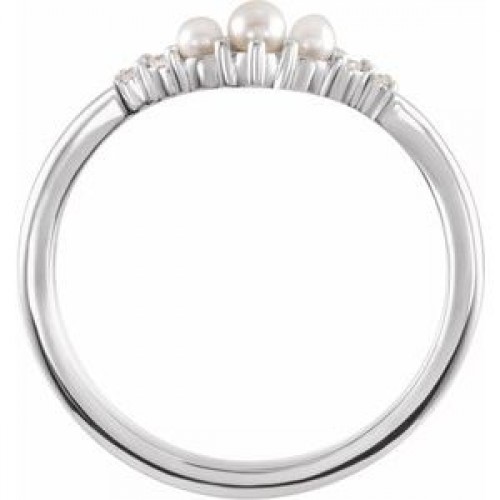 14K White Pearl & .03 CTW Natural Diamond Contour Band First
