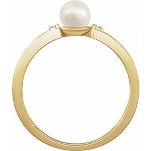 14K Yellow Freshwater Cultured Pearl & .03 CTW Diamond Ring First