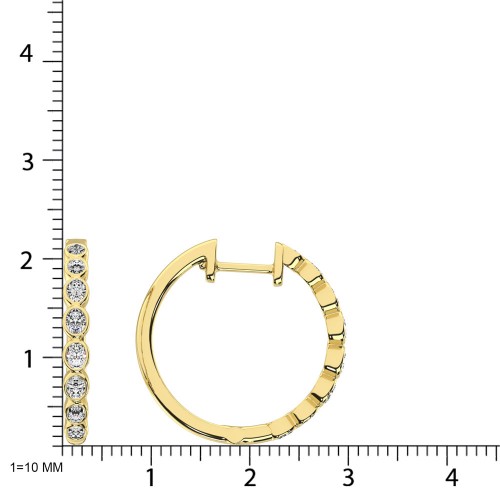 These glamorus earrings are available in 14K Yellow Gold. There are 16 round diamonds with a total carat weight of 1/3 ct set in a Bezel setting.