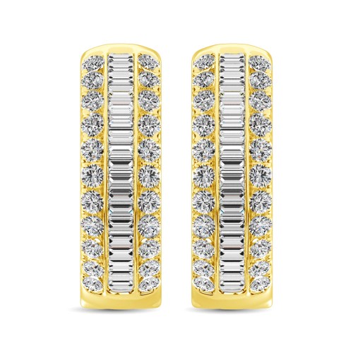 14K Yellow Gold Round and Baguette Diamond 1/2 Ct.Tw. Hoop Earrings