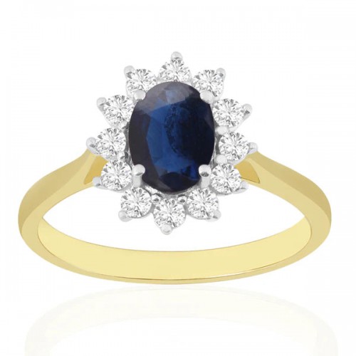 Sapphire 7 x 5mm, 1.00ct; diamonds 0.33ct.