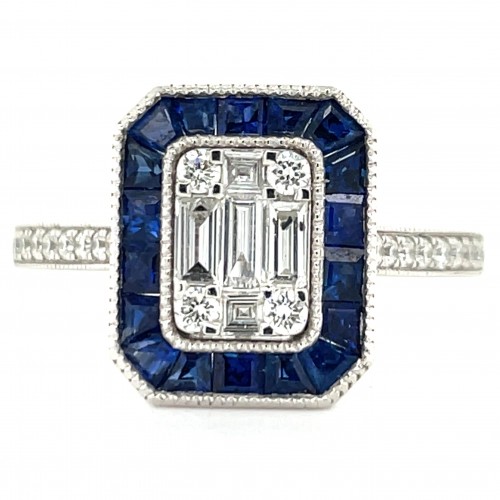 Stunning 18ct white gold emerald cut aquamarine and diamond ring.