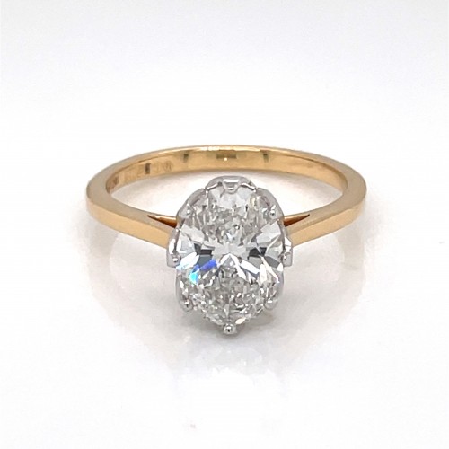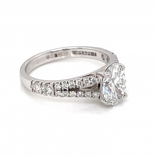 18ct White Gold Lab Grown Oval Diamond 1.69ct Ring, with split, diamond-set shoulders.