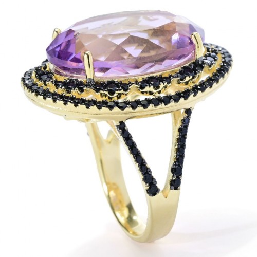 18K Gold Plated Choice of 20x15mm Oval Gemstone & Black Spinel Statement Ring Prasiolite 9