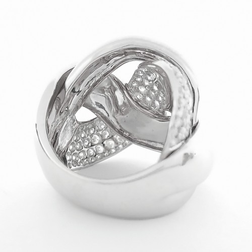 18K White Gold 3 Weave Fashion Crossover Style Ring With One Row Of Round Diamond Pave, 100RD=~2.25ctw.