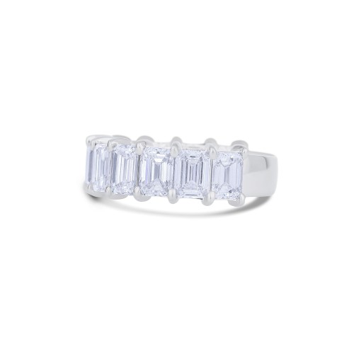 18K White Gold Emerald Cut Diamond Halfway Wedding Band